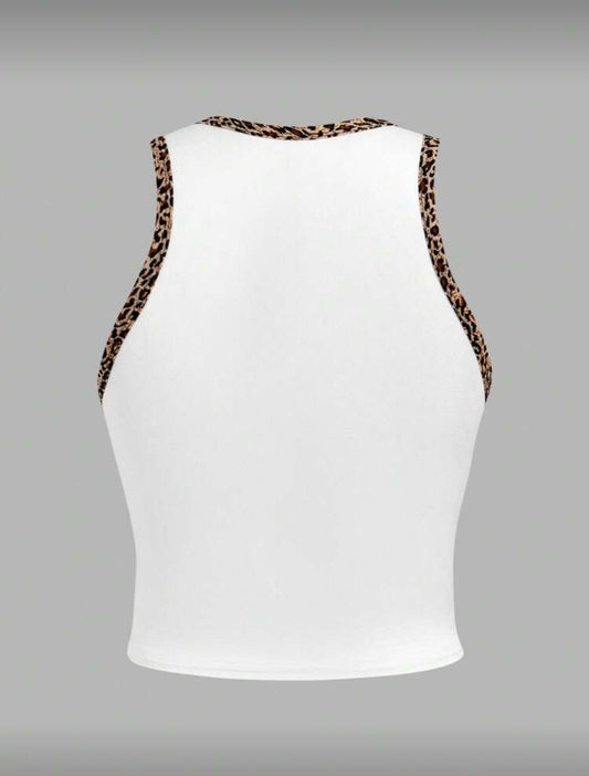 Pink Leopard Plaid Striped Print "Love" Graphic Casual Minimalist Round Neck Tank Top