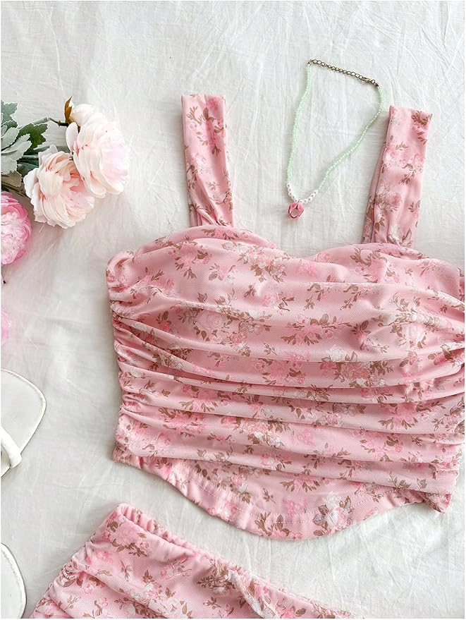 This charming two-piece set features a delicate brown floral print that beautifully complements all skin tones. The ruched crop tank top pairs seamlessly with a sleek bodycon skirt, creating a flattering silhouette perfect for warm-weather occasions. Crafted from lightweight fabric, this versatile ensemble transitions effortlessly from beach days to casual getaways, offering both comfort and style in one coordinated look.